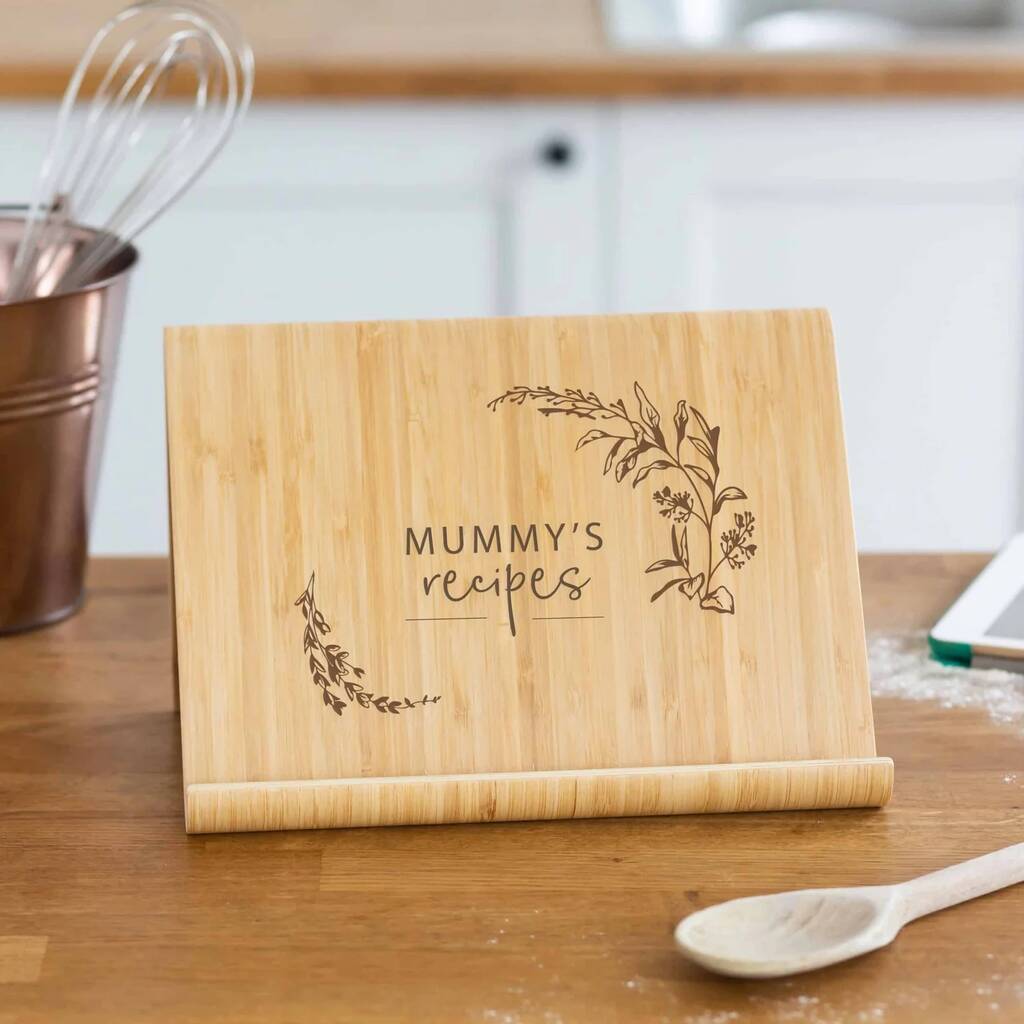 New in, this lovely floral Personalised Bamboo Floral Recipe Book or Tablet Stand is great for any lovers of baking!This wooden stand is super eco-friendly and practical, ideal to prop up books or tablets when cooking.