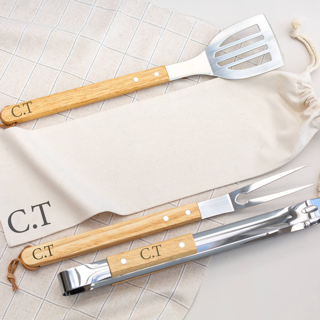 Personalised Engraved Initial BBQ Cooking Tool Set With Carry Bag
