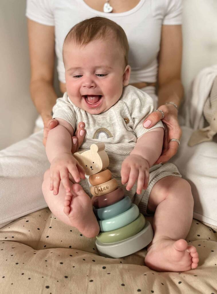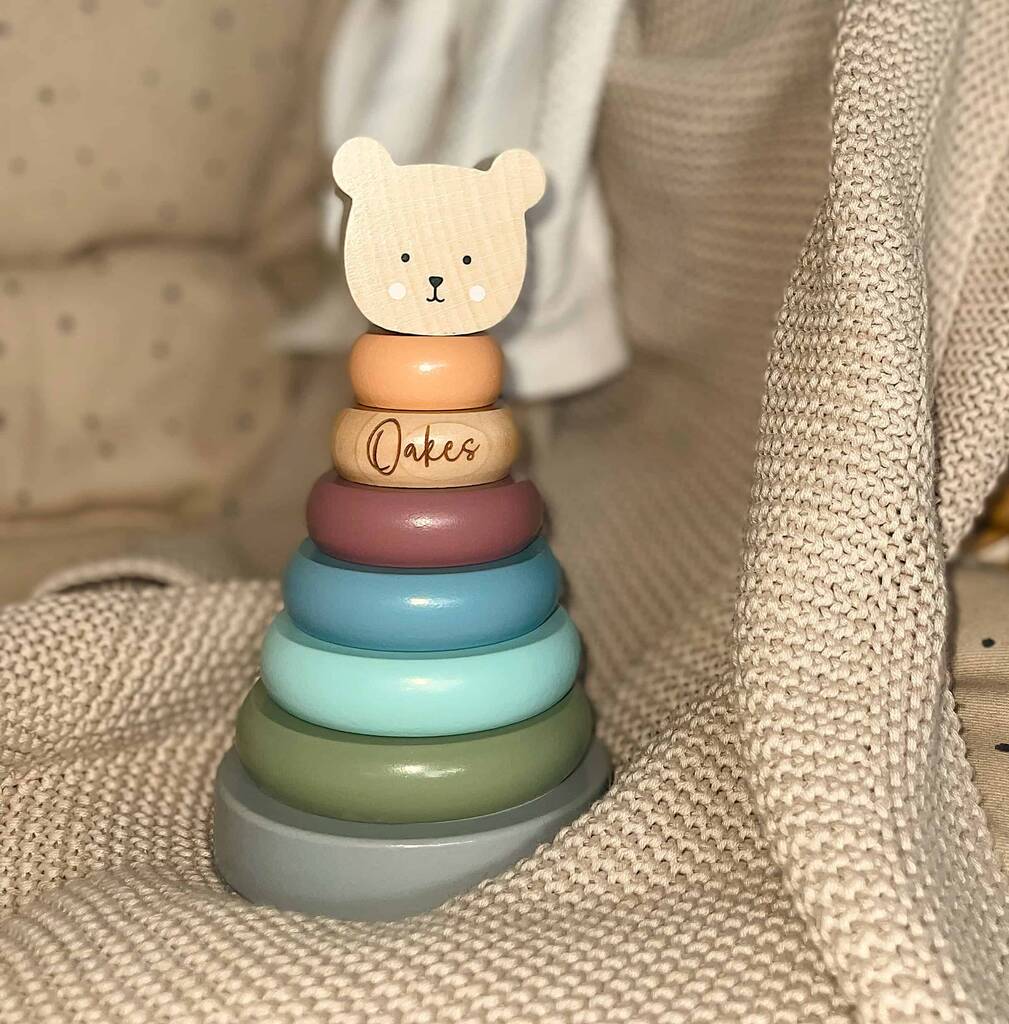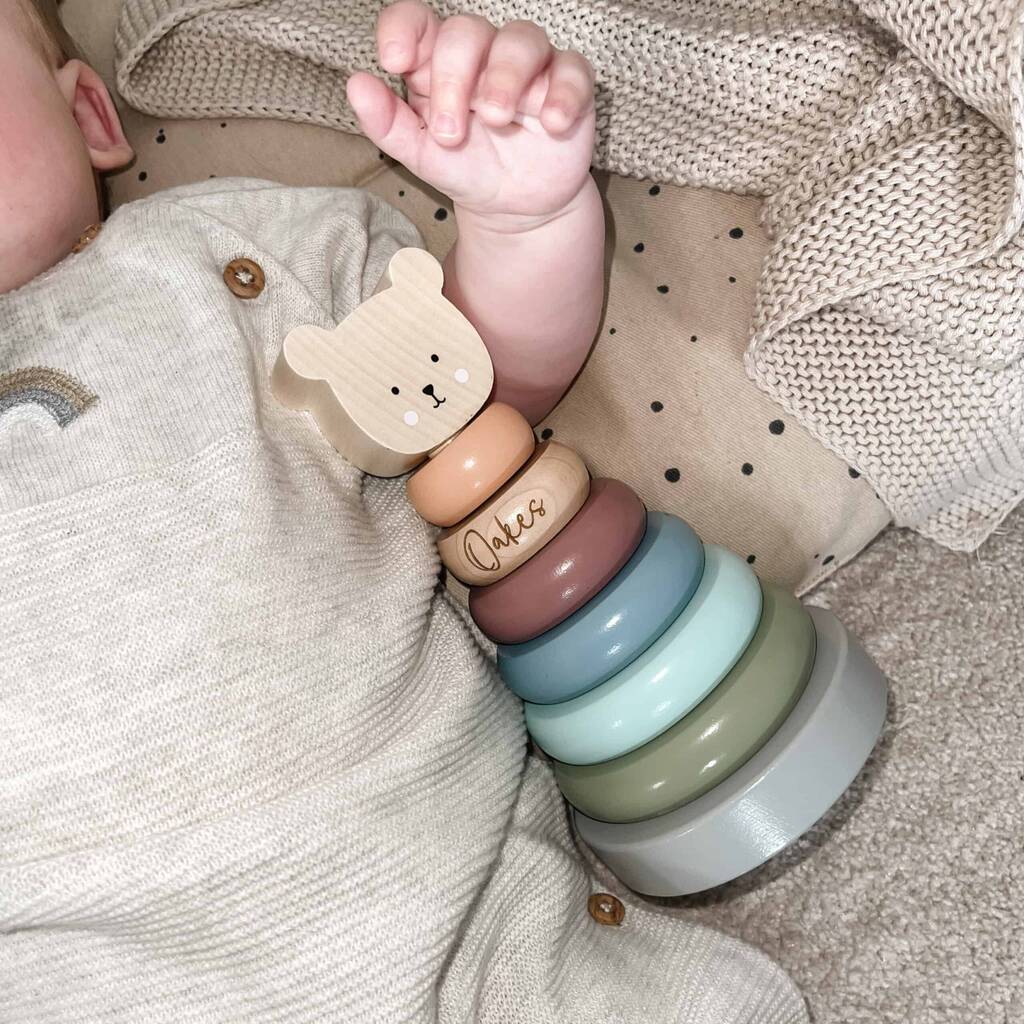 • Personalised Wooden Colourful Teddy Stacking Toy, thumbnail 1 of 5