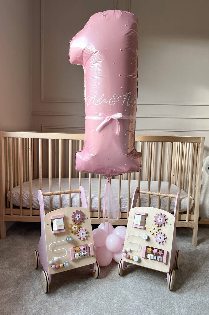Our new Personalised Wooden Pastel Pink Activity Walker is the perfect gift for any little one wanting to take their first steps!