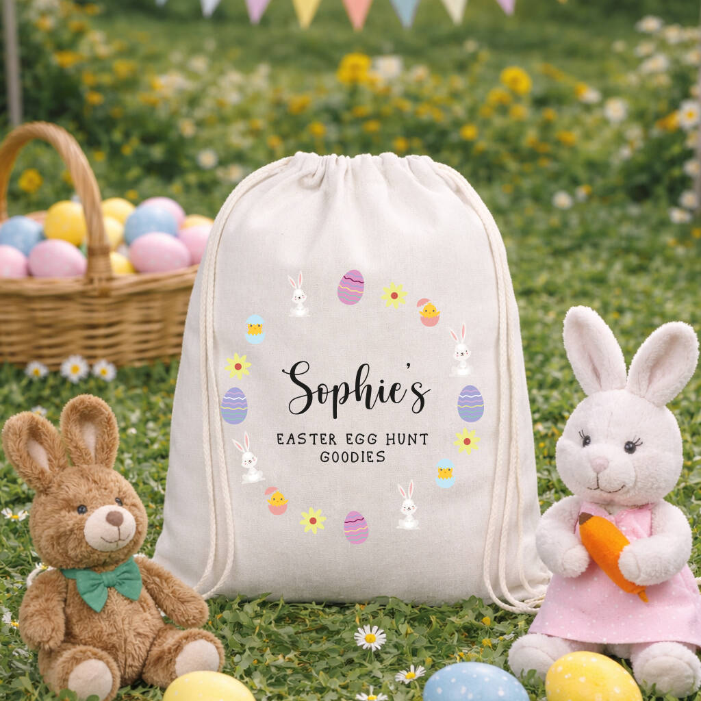 Hop into Easter fun with our enchanting Personalised Easter Egg Hunt Bag adorned with an adorable bunny ears and easter egg design!