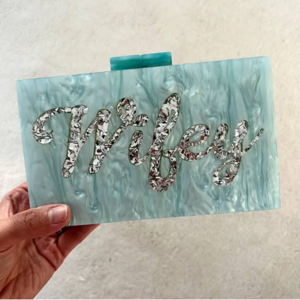 Silver Bride To Be Wifey Pearl Sparkle Clutch Bag