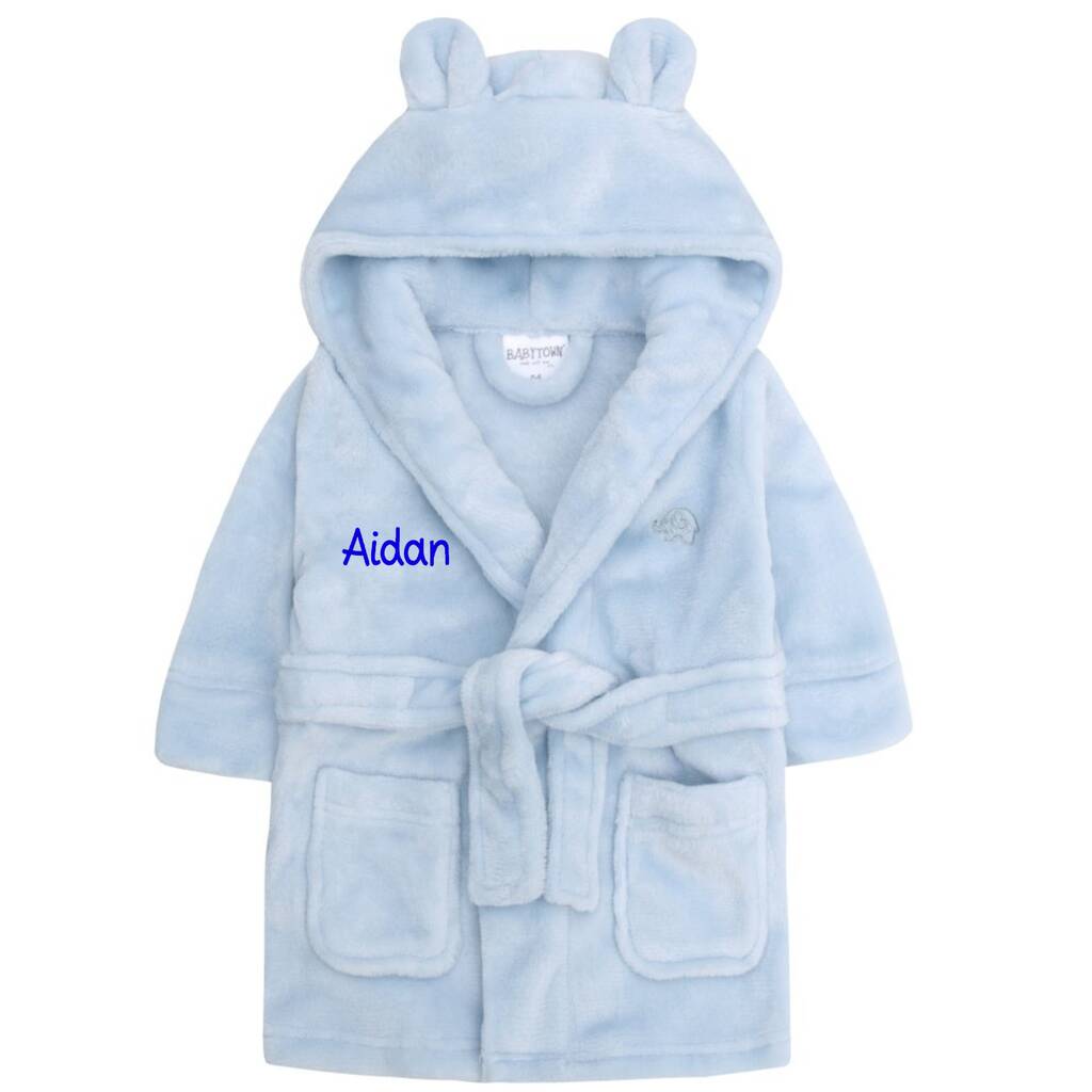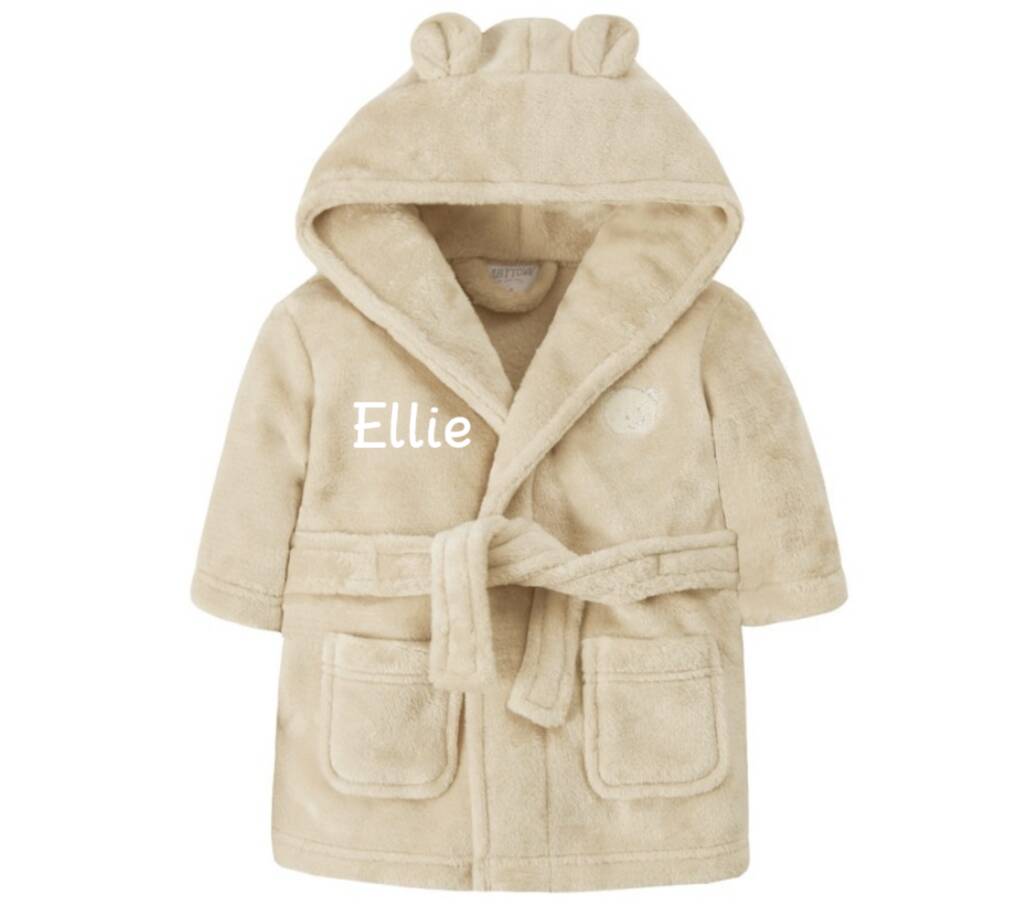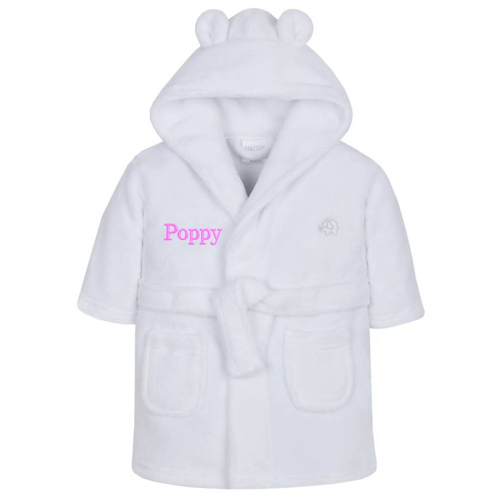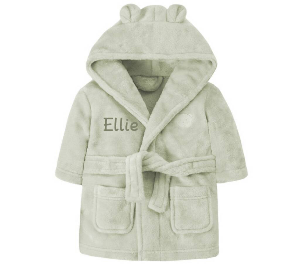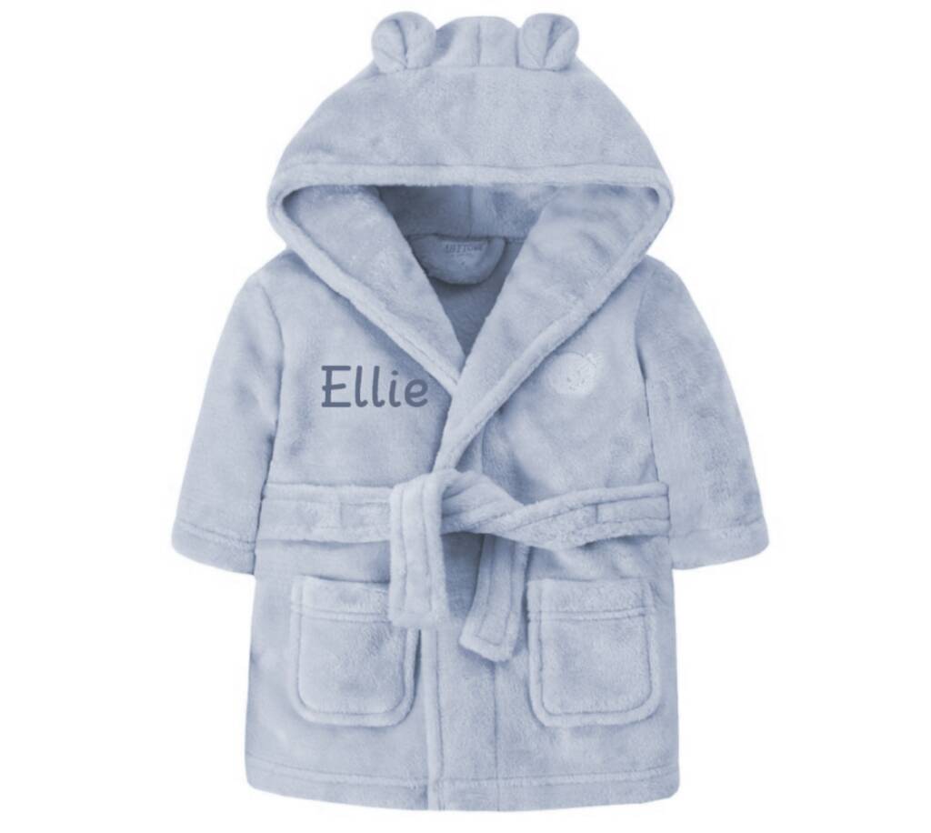 Personalised Embroidered Dressing Gown Robe for Toddlers and Babies. Available in 4 size options. 0-6 Months, 6-12 Months, 12-18 Months & 18-24 Months.