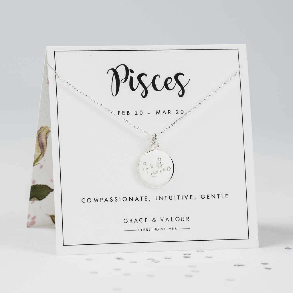 The constellation has lots of detailing and a high polished finish. It will arrive on our bespoke Grace & Valour zodiac gift card which shows the star sign and its key personality traits.
