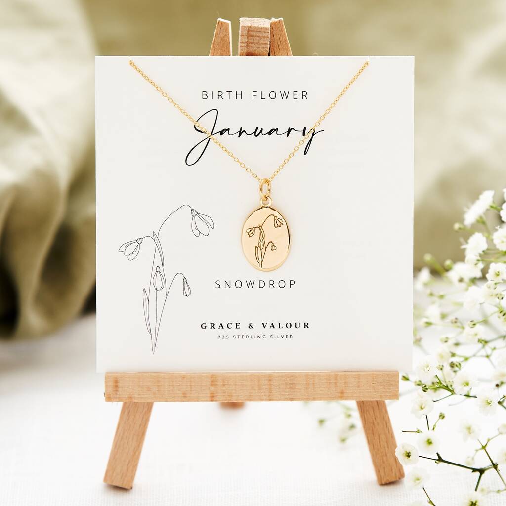 Personalised Birthflower Engraved Sterling Silver Necklace – Custom Birth Flower Pendant Gift For Her