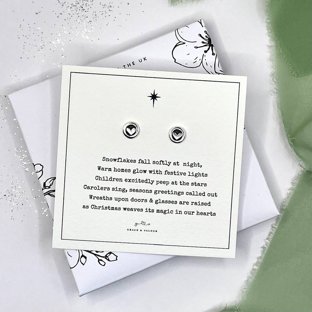 Christmas Poem Sterling Silver Love Heart Stud Earrings