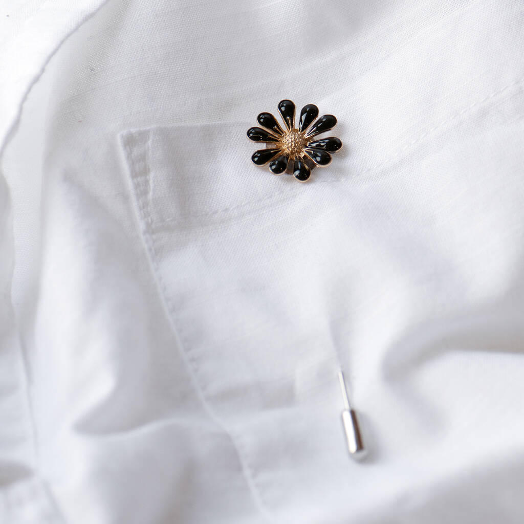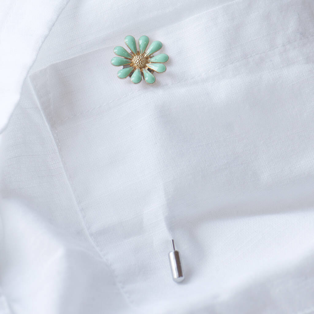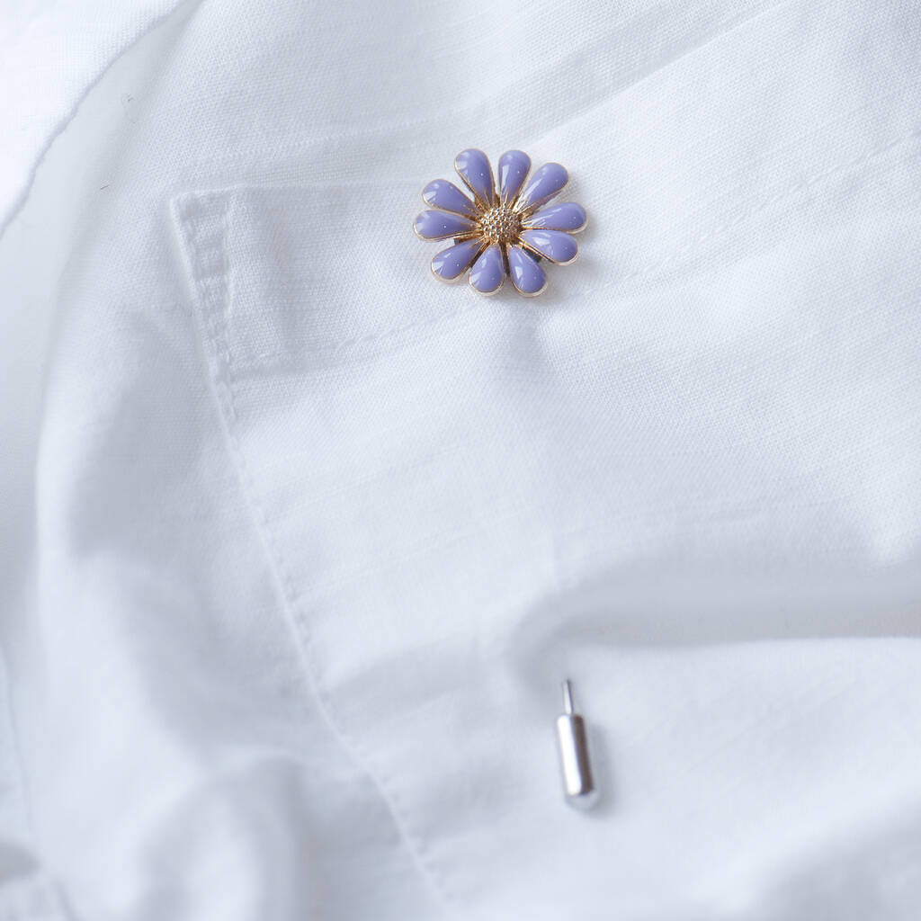 This daisy lapel pin is perfect for brightening up a lapel or pocket. Use it to brighten up your jackets or to add interest to an outfit.