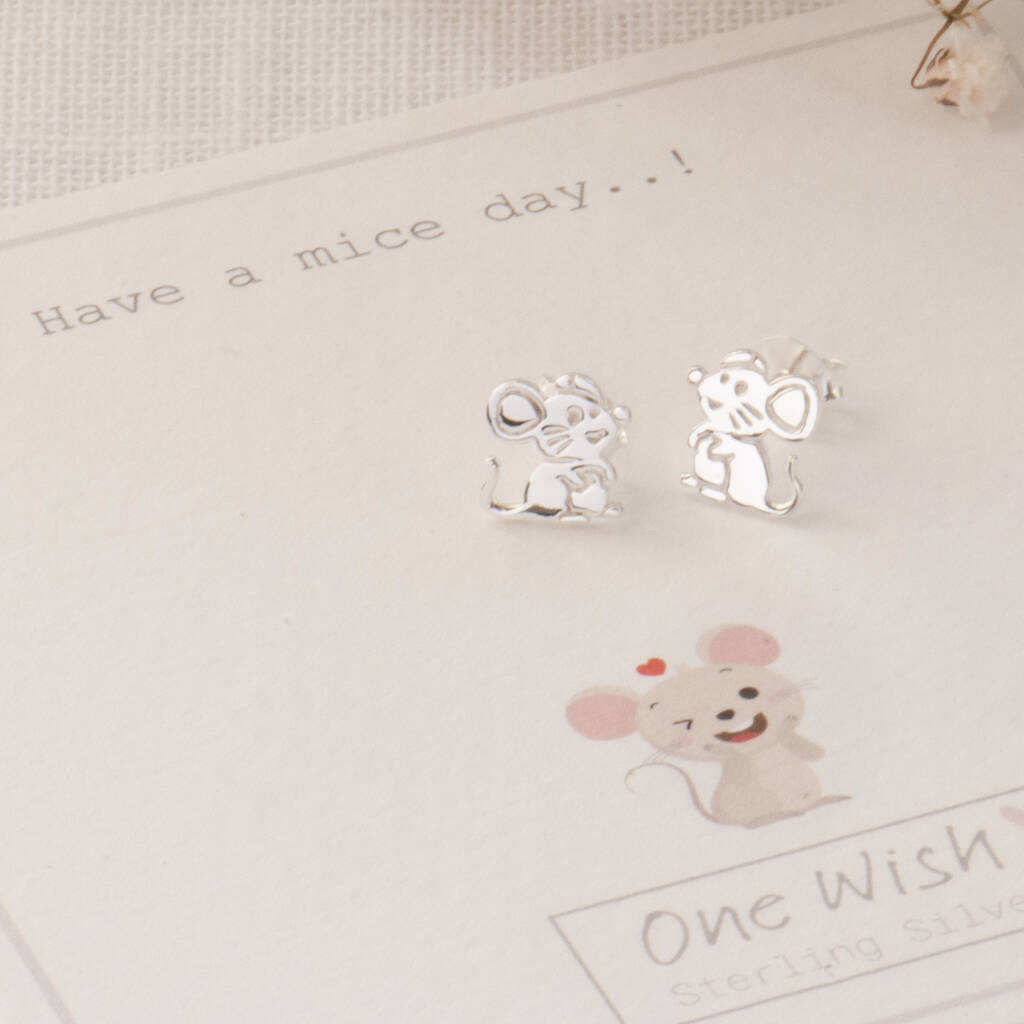 The earrings will arrive beautifully packaged on our bespoke One Wish sentiment gift card which reads 'Have a mice day'