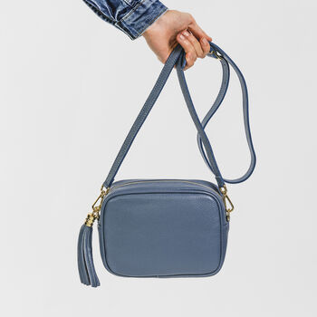 Denim Blue Personalised Leather Crossbody Box Handbag