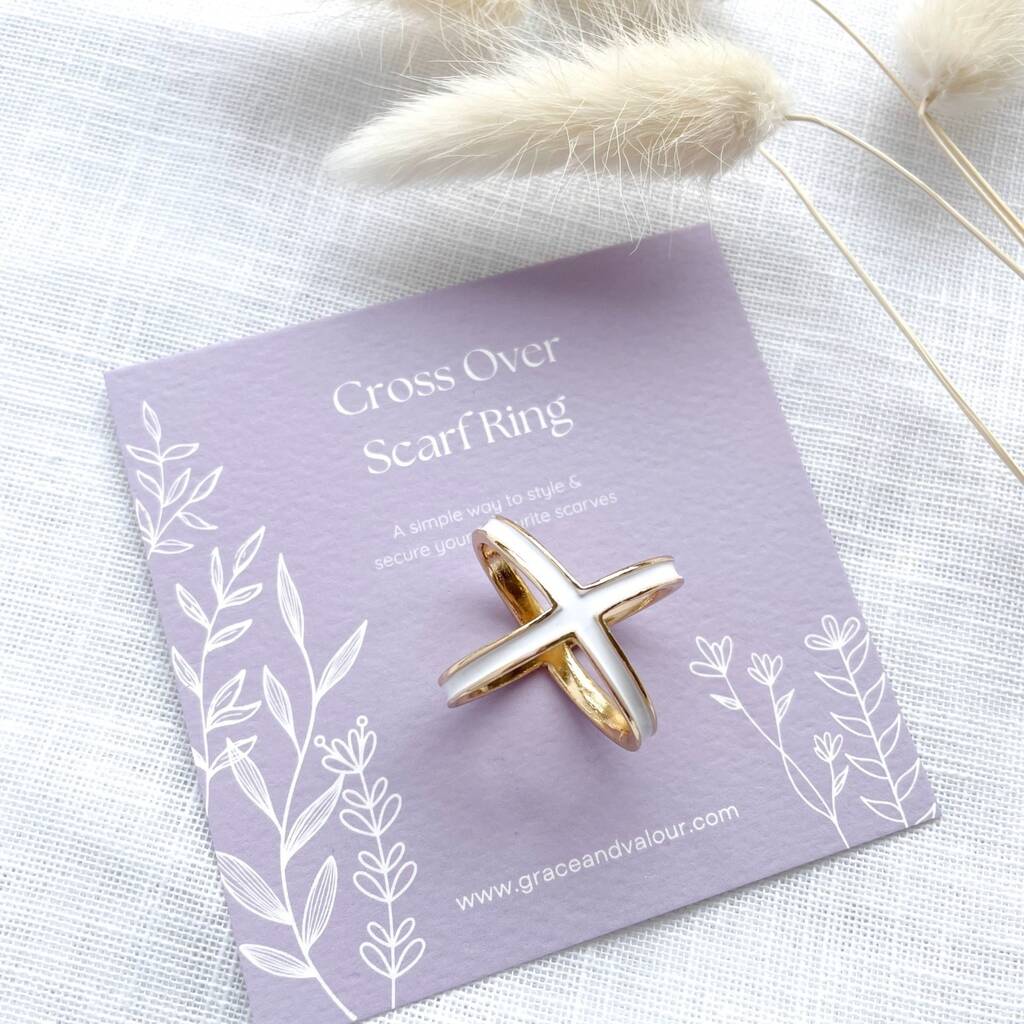 Enamel four-way enamel scarf ring holder to secure silk or lightweight scarves stylishly. This elegant scarf ring makes a thoughtful gift for her.