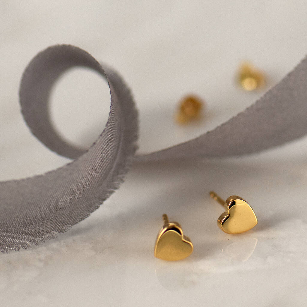 Gold Plated Heart Stud Sterling Silver Earrings Valentines Gift For Her