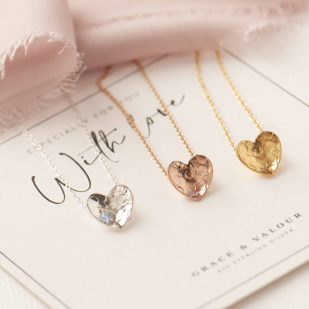 Hammered Heart Sterling Silver Necklace Valentine's Gift For Her