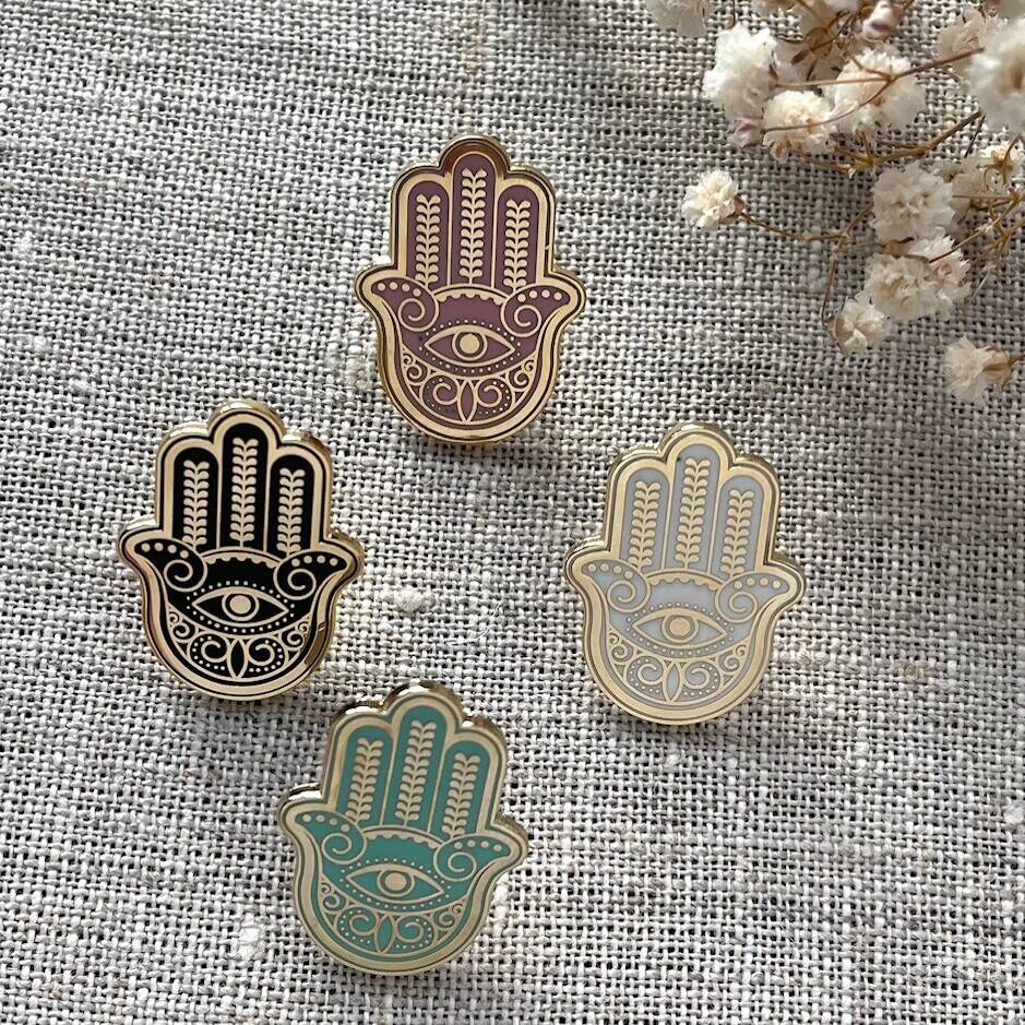 Hamsa Enamel Pin, Spiritual And Meaningful Gift For Her, Protection Symbol Accessory
