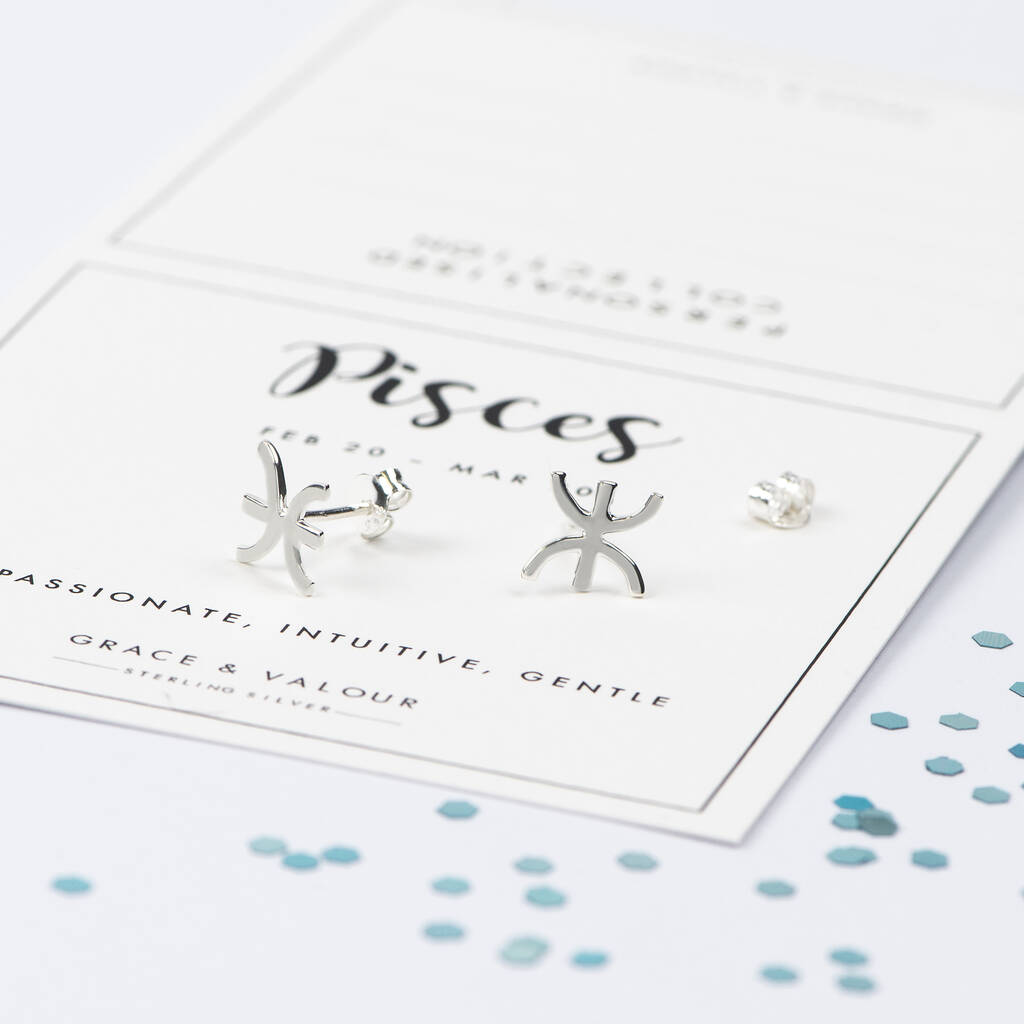 Pisces Zodiac Stud Earrings In Sterling Silver – Astrology Star Sign Birthday Gift