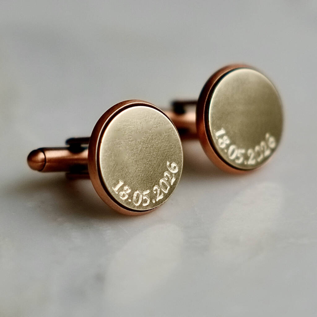 A beautiful pair of handmade curve engraved cuff links. Perfect for Celebrating 7th (copper) and 8th (Bronze) Anniversaries.