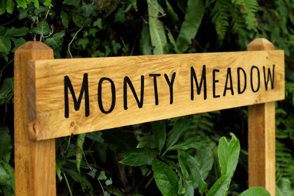 Our bespoke, engraved house signs are handmade with locally-sourced oak from Devon, and can be customised with your house name, business information or campsite address. We make these standing oak signs by hand in our workshop in Devon, and paint with a waterproof wood paint to ensure that this sign works perfectly outdoors.