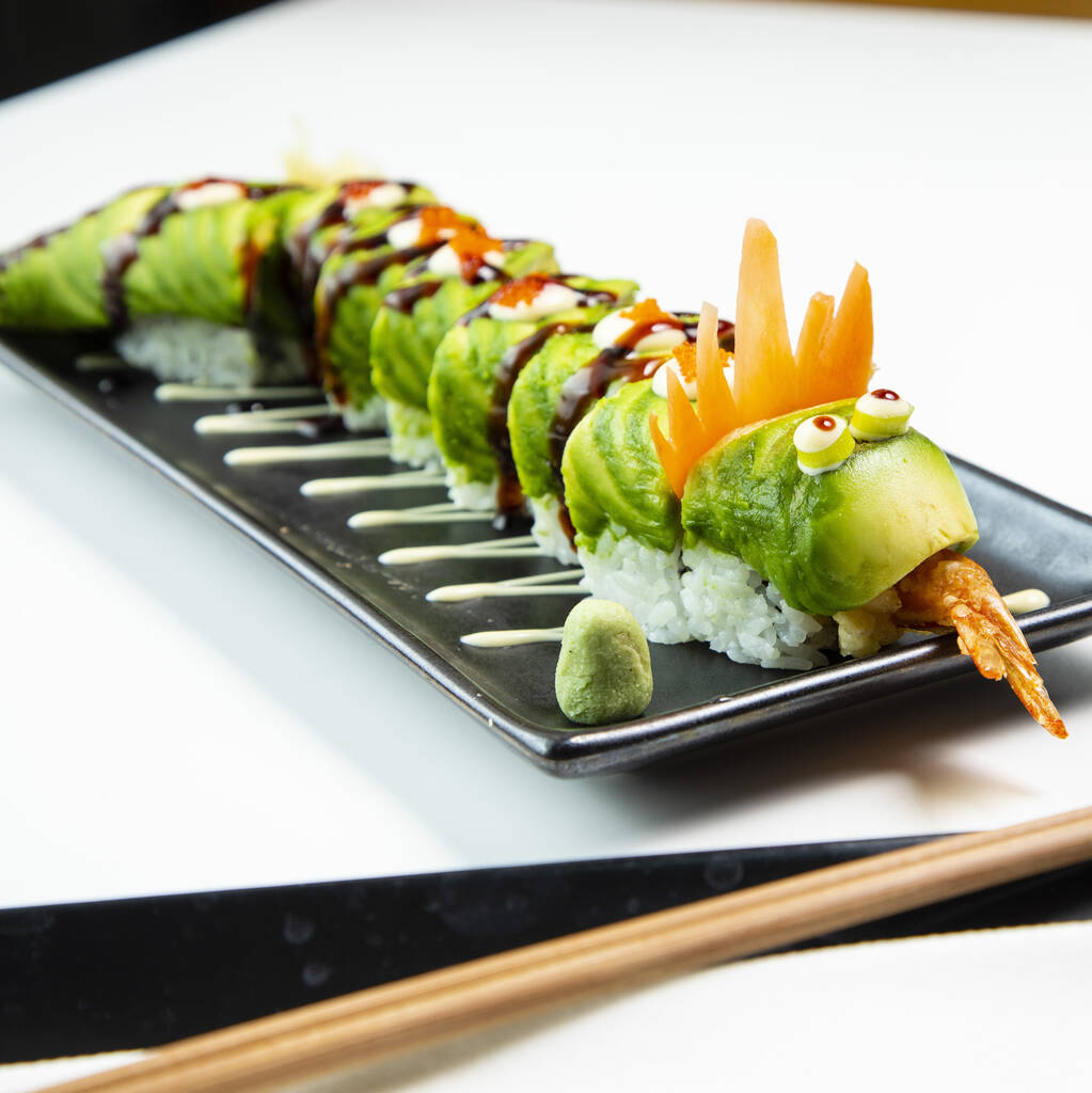 Indulge in Inamo's signature dish—the Dragon Roll, featuring crunchy tempura shrimp, creamy avocado, and mayo, or try the Vegetarian and Gluten Free alternative, the Red Dragon Roll, with red pepper, crunchy cucumber, and smooth avocado.