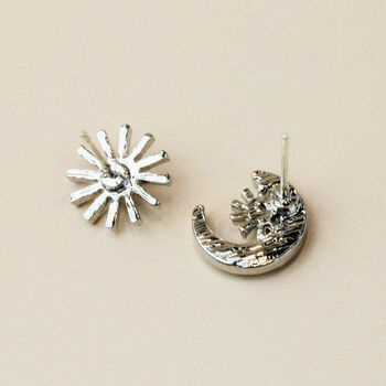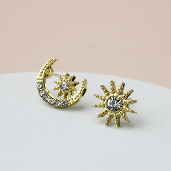 Asymmetrical Crystal Moon And Star Stud Earrings