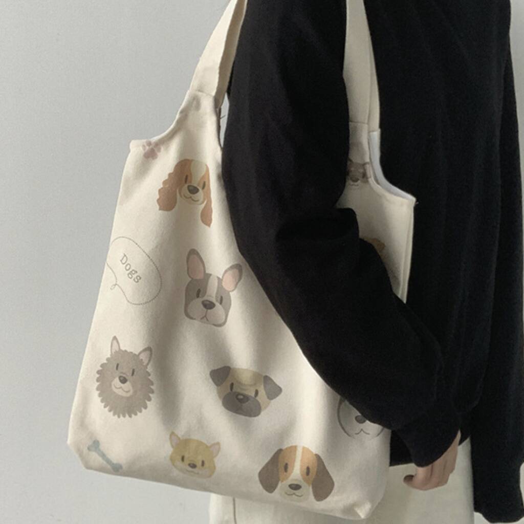 Dog Breeds Large White Canvas Tote Bag Birthday Gift For Dog Lovers