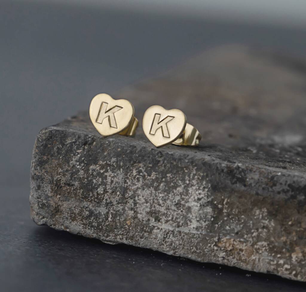Heart Letter Initial Stainless Steel Stud Earring