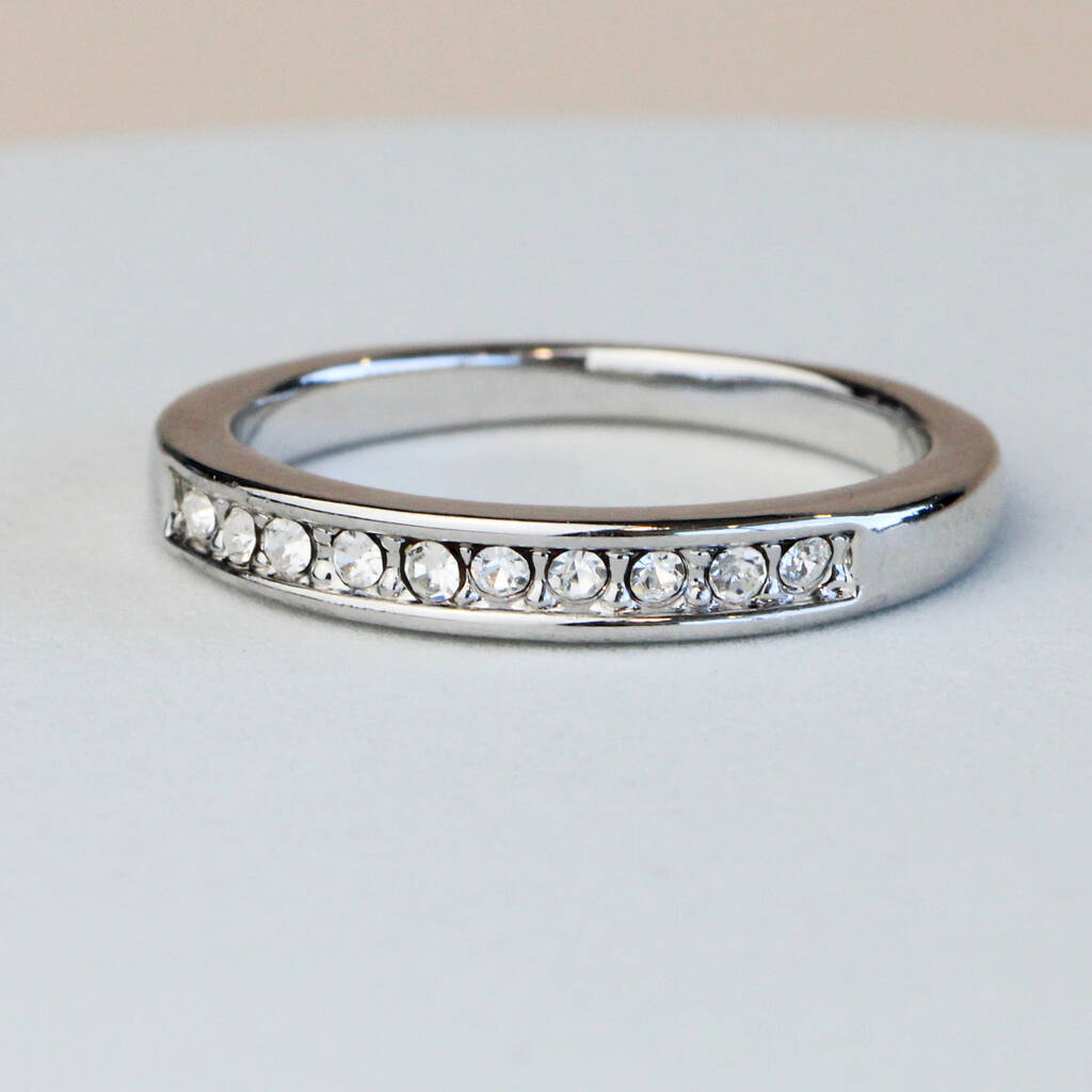 Inlaid Crystal Simple Silver Band Ring