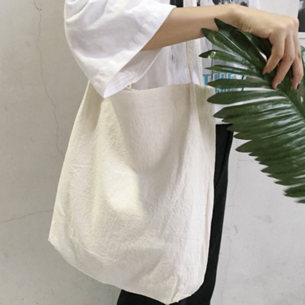 White Linen Pastel Large Shopping Tote Shoulder School Bag For Beach
