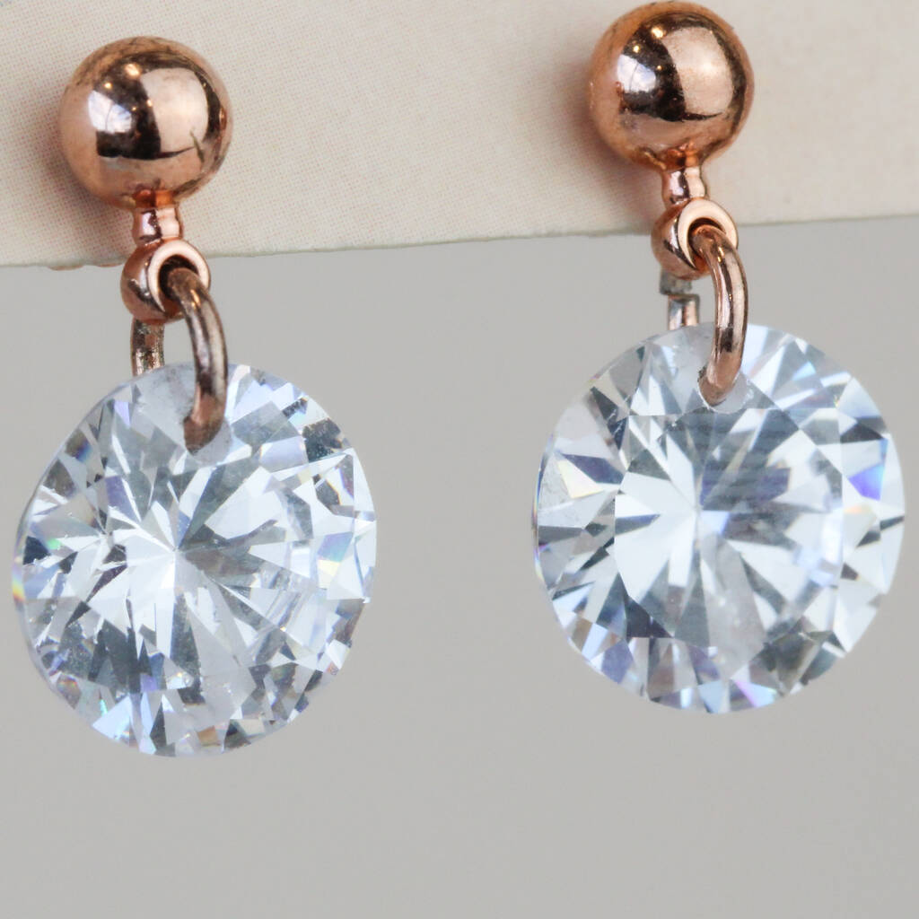 Rose Gold Diamond Cut Crystal Dangle Stud Earrings