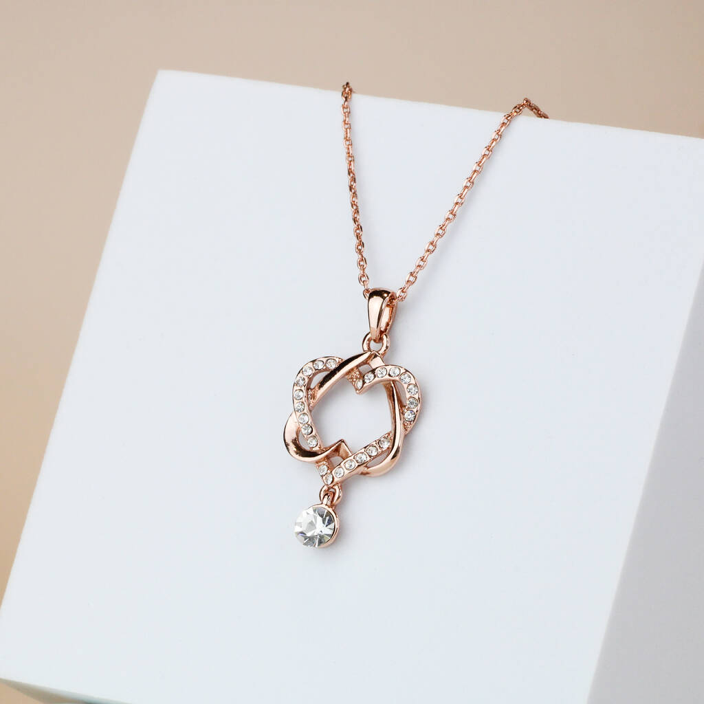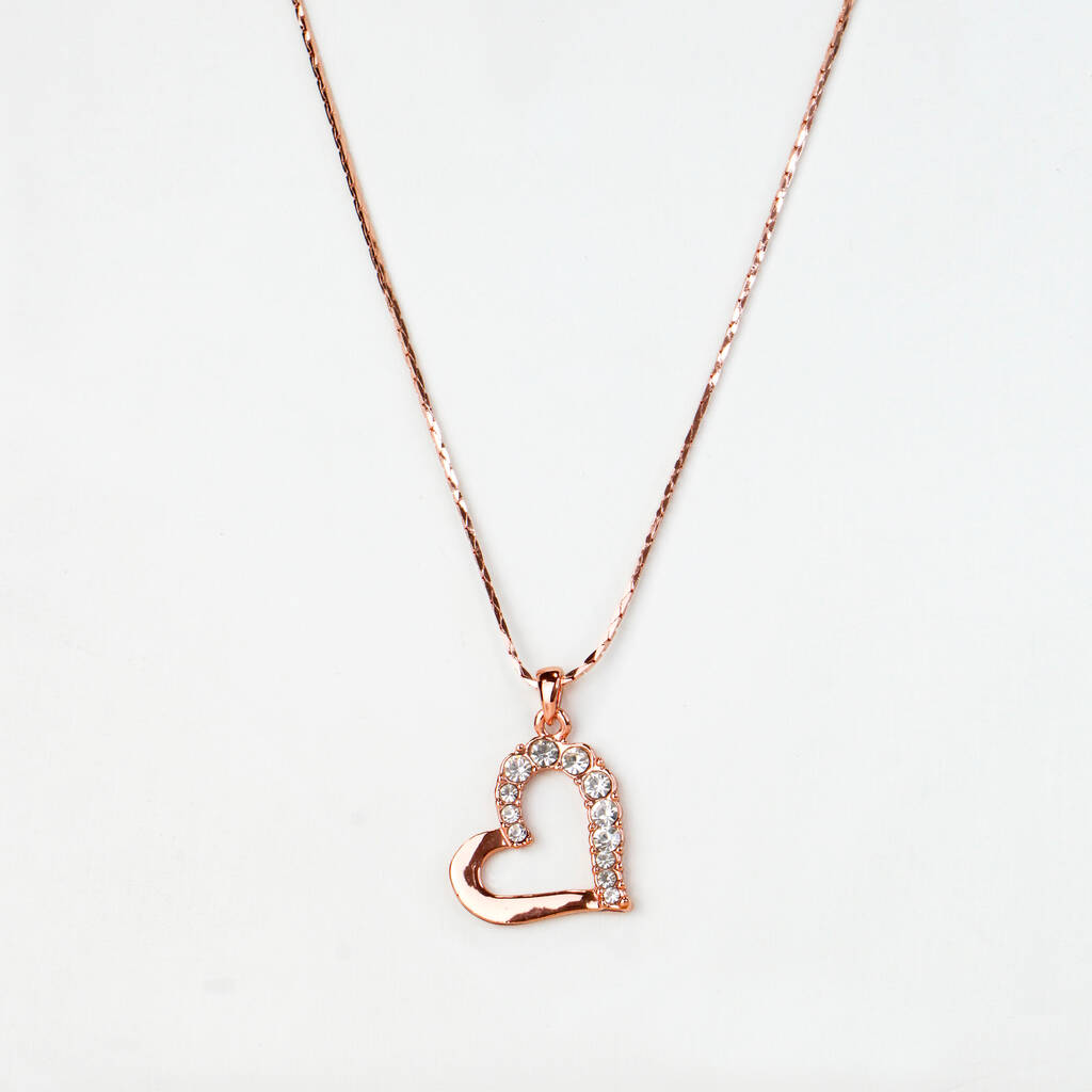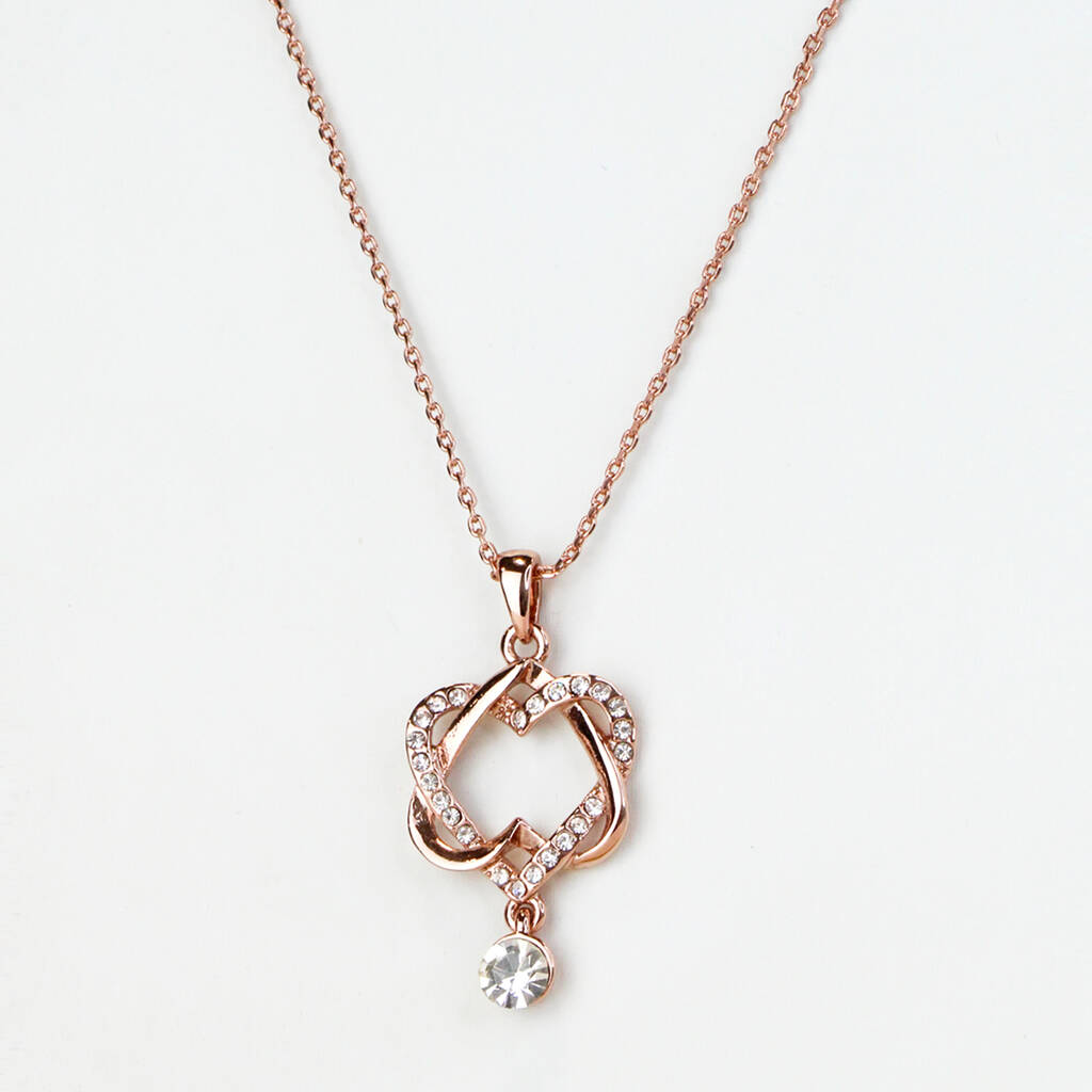 Rose Gold Colour Heart Pendant Necklace With White Crystal