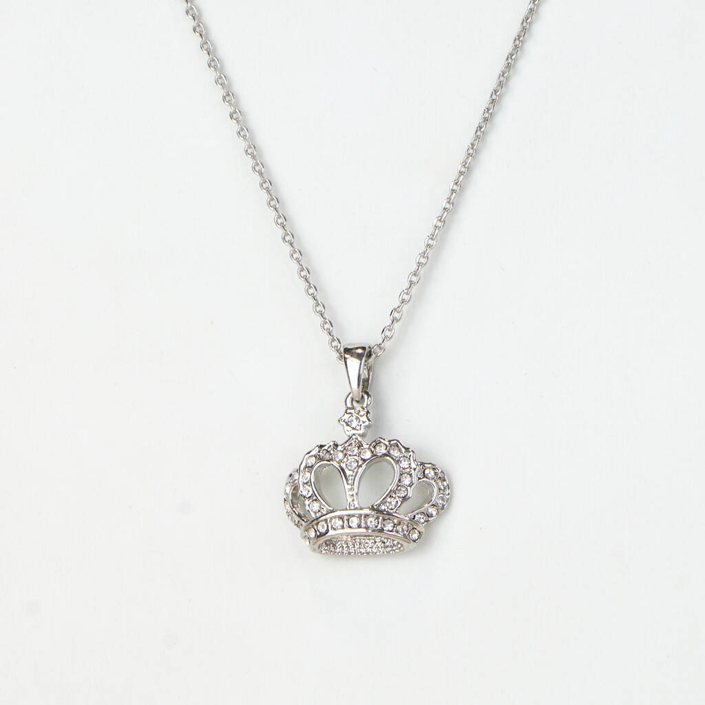 Sparkly Crown Shiny Pendant Necklace With Tiny White Zirconia