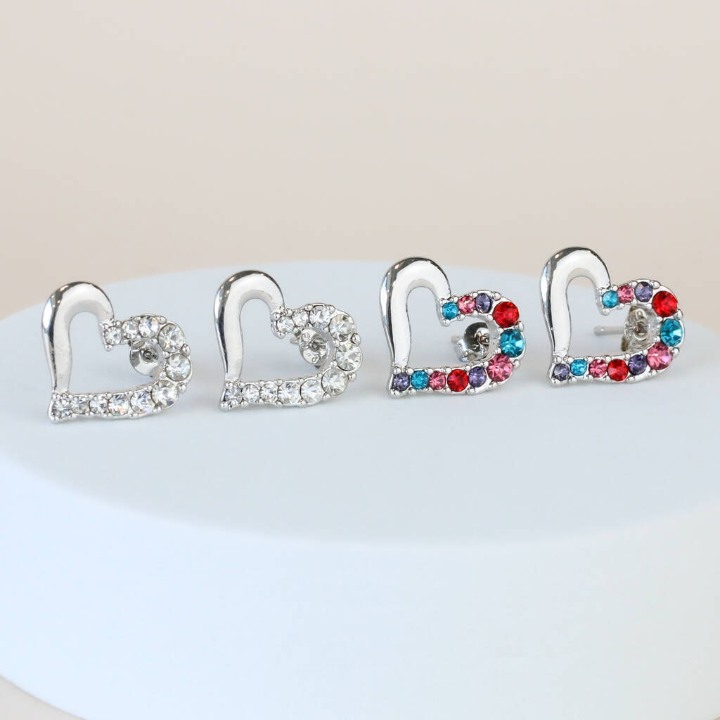 Sparkly Crystal Heart Stud Earrings, 1 of 3