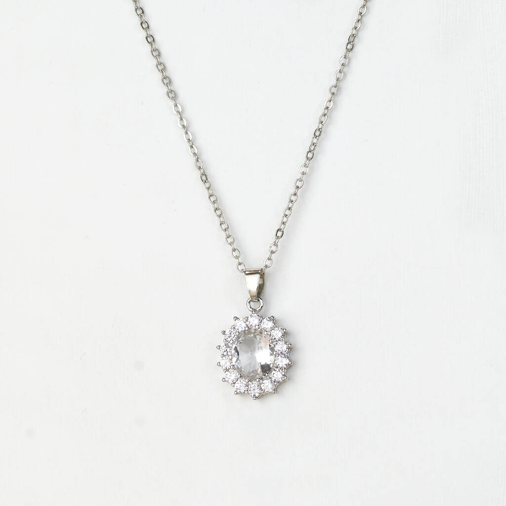 Vintage Style Crystal Pendant Necklace With Tiny White Zirconia Sparkling For Party