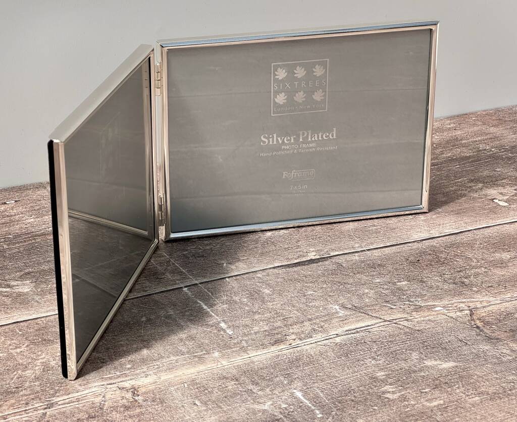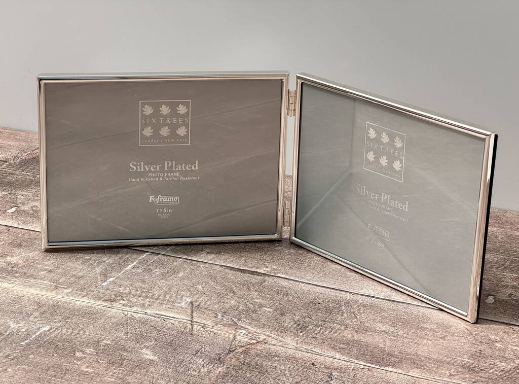 Sixtrees Slim Silver Plated Border Double Photo Frame, Five X Seven
