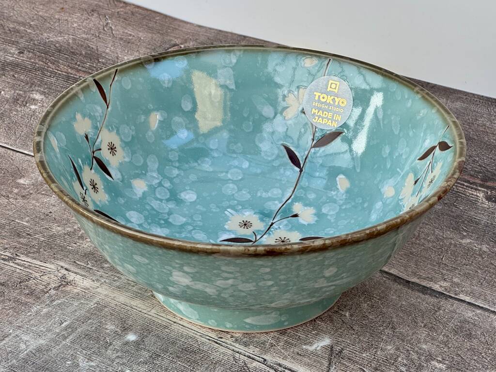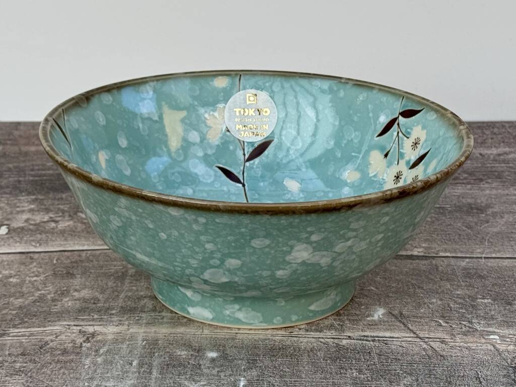 Turquoise Sakura / Cherry Blossom Flower Patterned Bowl, 21cm, 1 of 3