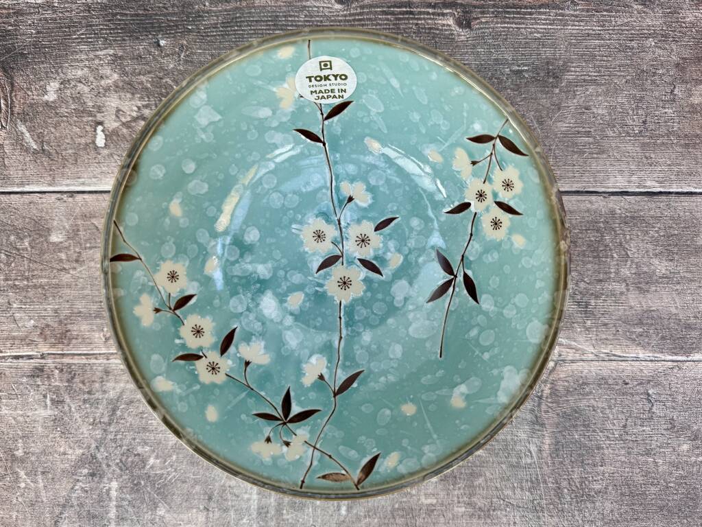 Turquoise Sakura / Cherry Blossom Flower Patterned Bowl, 21cm
