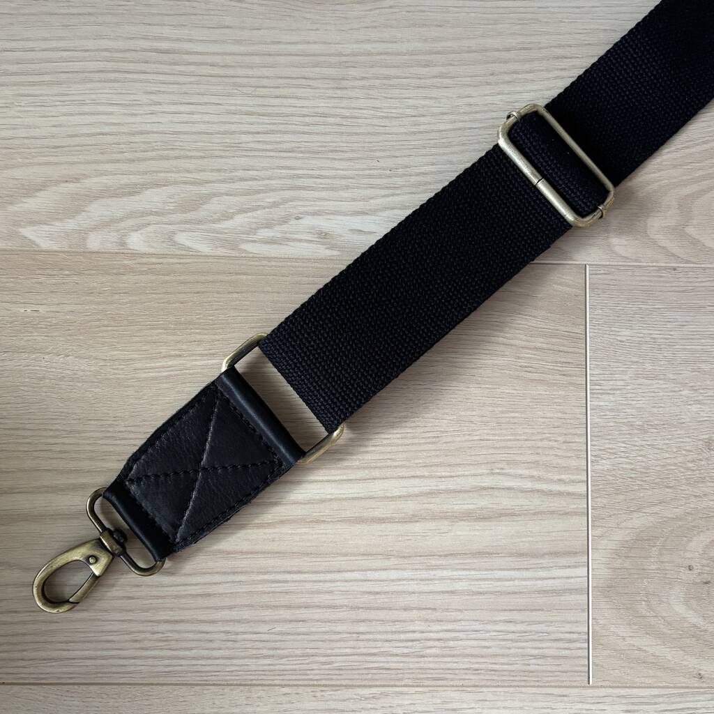 A very large chunk of premium leather. With a leather handle plus an adjustable and detachable leather shoulder strap this bag can be worn in a variety of ways. The canvas shoulder strap is fully adjustable and is also detachable with large, strong, clasp fittings to ensure durability. The shoulder strap is 5cm thick.