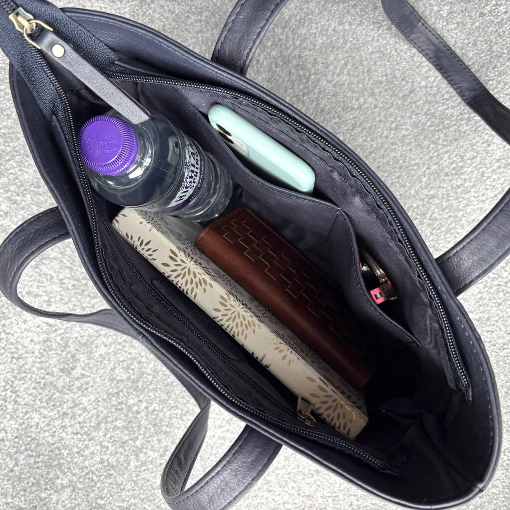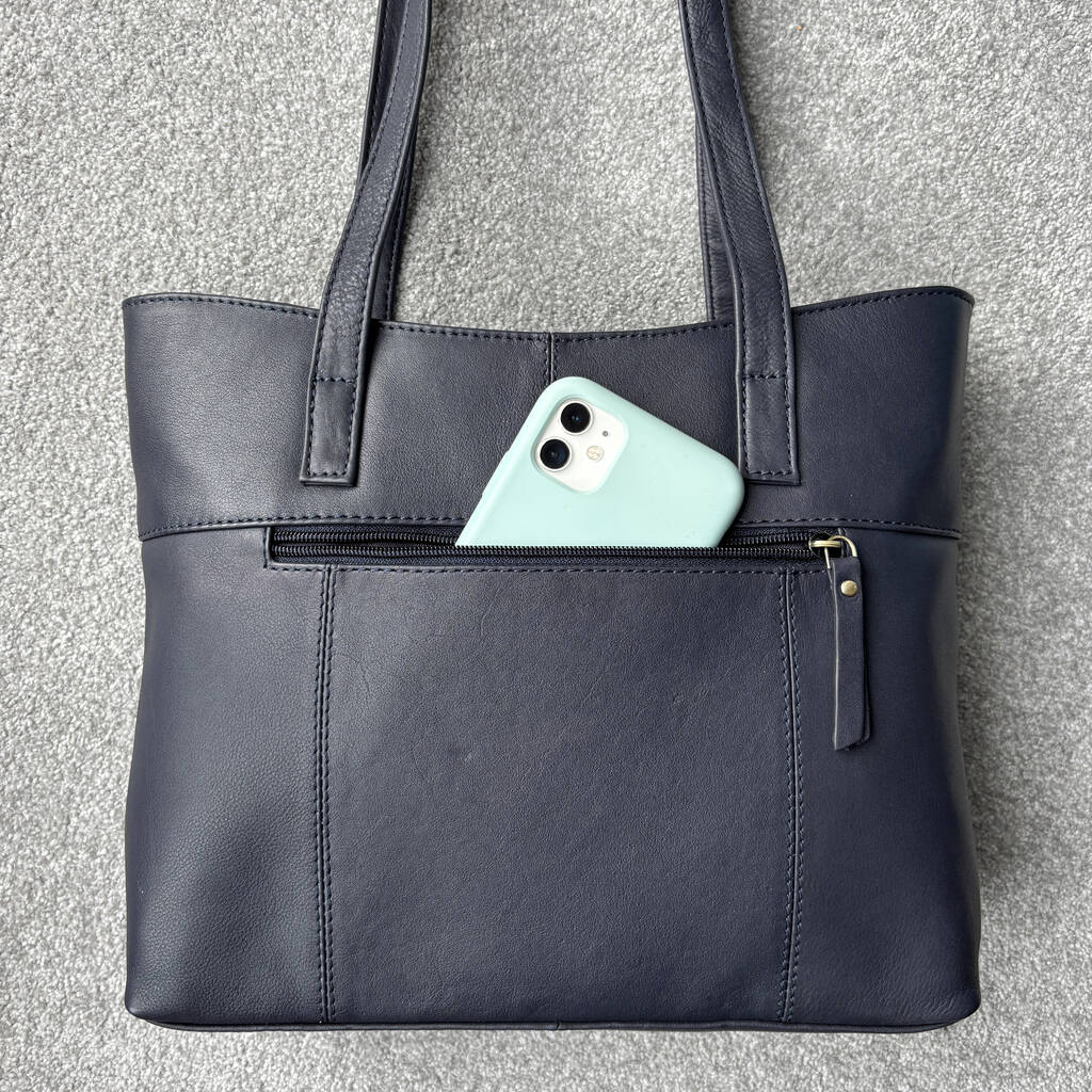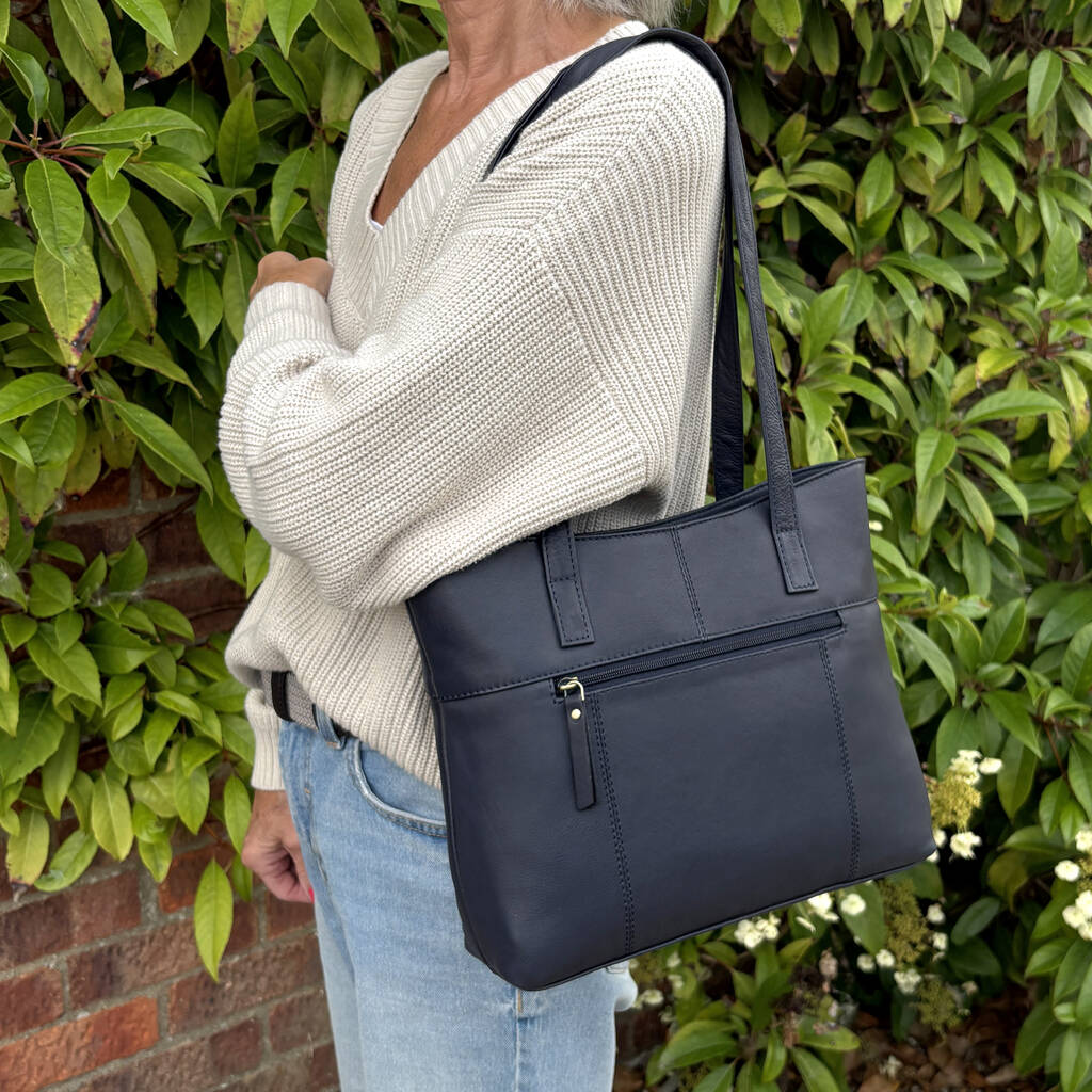 Women's Navy Genuine Leather Shopper, Handbag, Shoulder Bag