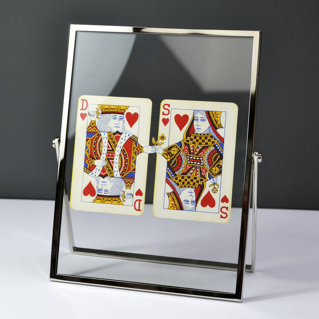 This beautiful gift is a work of art that celebrates a special moment in a couple's life. Perfect for engagements but equally wonderful for anniversaries, weddings or simply just to show someone how much you care. The specially created playing cards design is based on real, vintage King and Queen playing cards, and the framing means both sides of the cards can be seen.