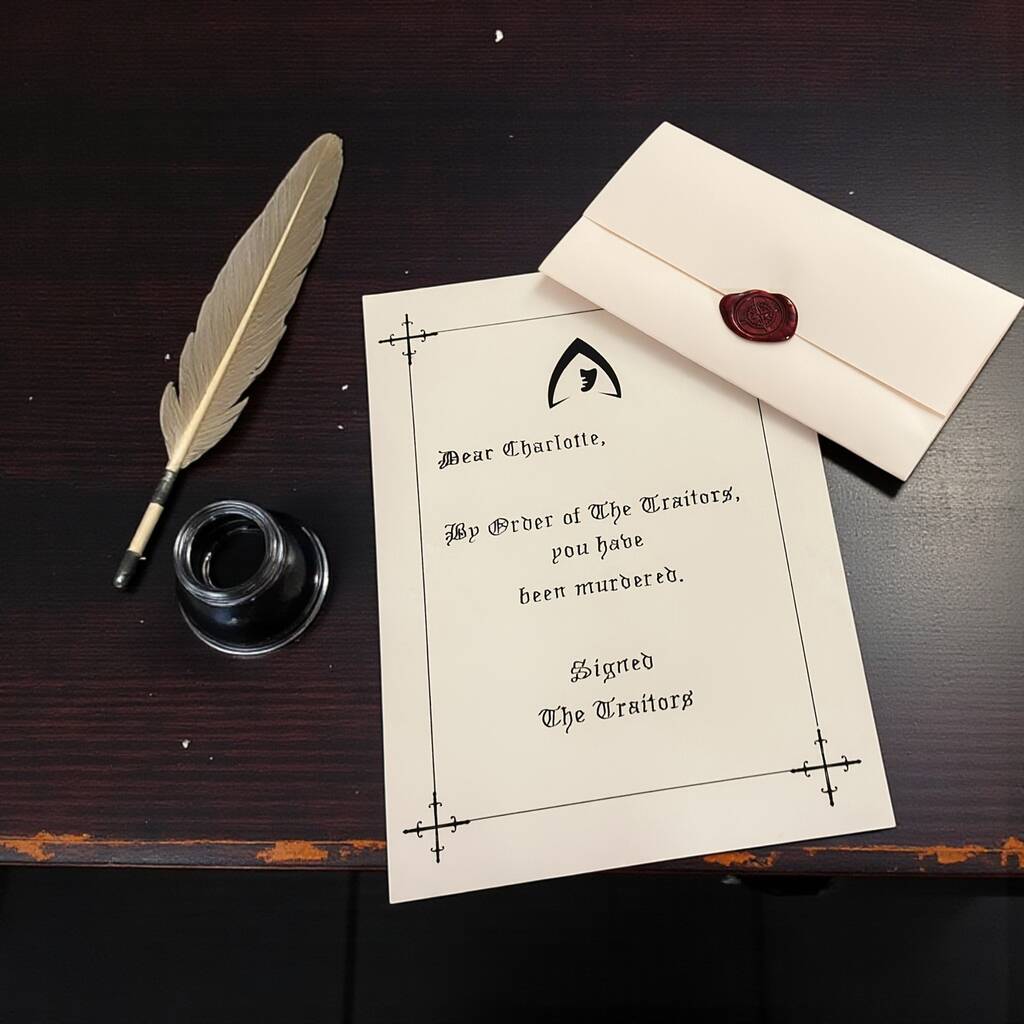 A dramatic, personalised handwritten letter inspired by the suspense and intrigue of The Traitors, delivered secretly to surprise any superfan with playful deception.Bring the drama home with a bespoke Traitors-inspired letter, carefully handwritten and tailored to your chosen recipient. Whether they’re declared a Faithful, exposed as a Traitor, or summoned for a mysterious mission, each letter is crafted to feel authentic and deliciously theatrical.