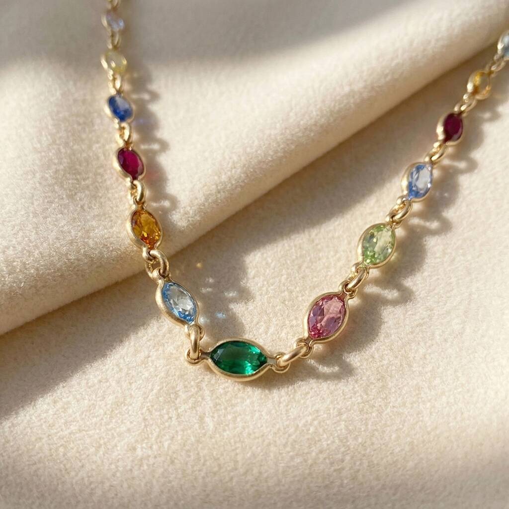 Luxury Gold Plated Multi Colour Gemstone Crystal Necklace