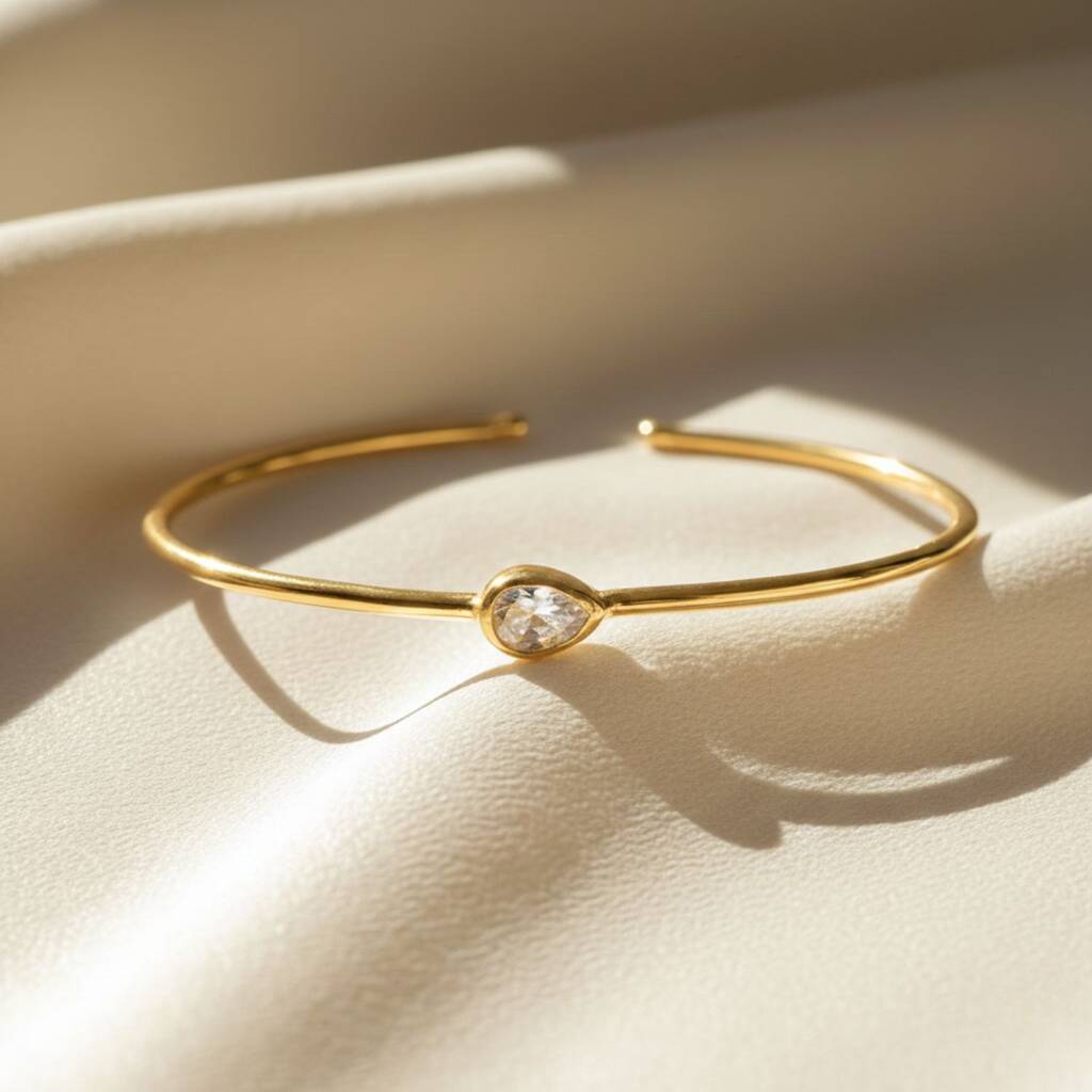 18ct Gold Plated White Topaz April Birthstone Bangle
