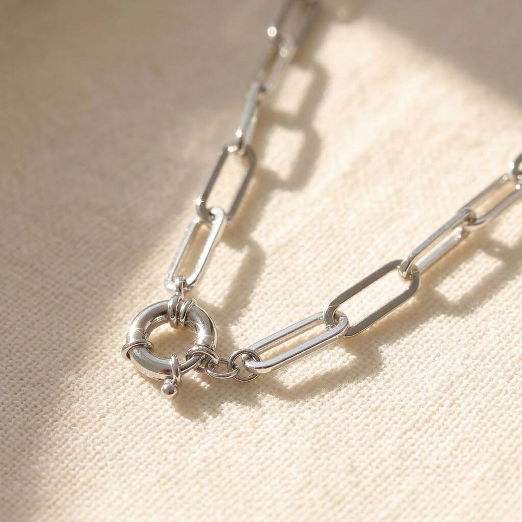 18ct Rhodium Filled Silver Paperclip Necklace