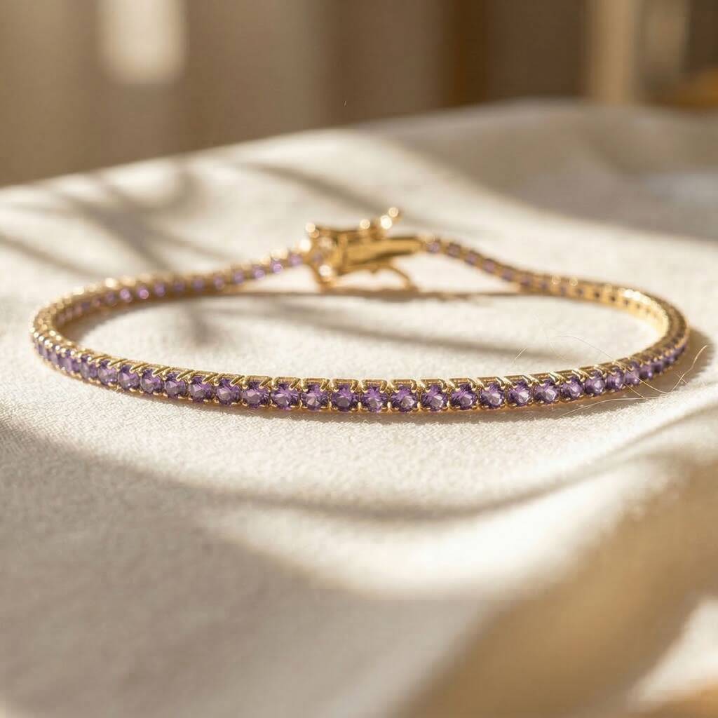 Amethyst February Birthstone Dainty Tennis Bracelet
