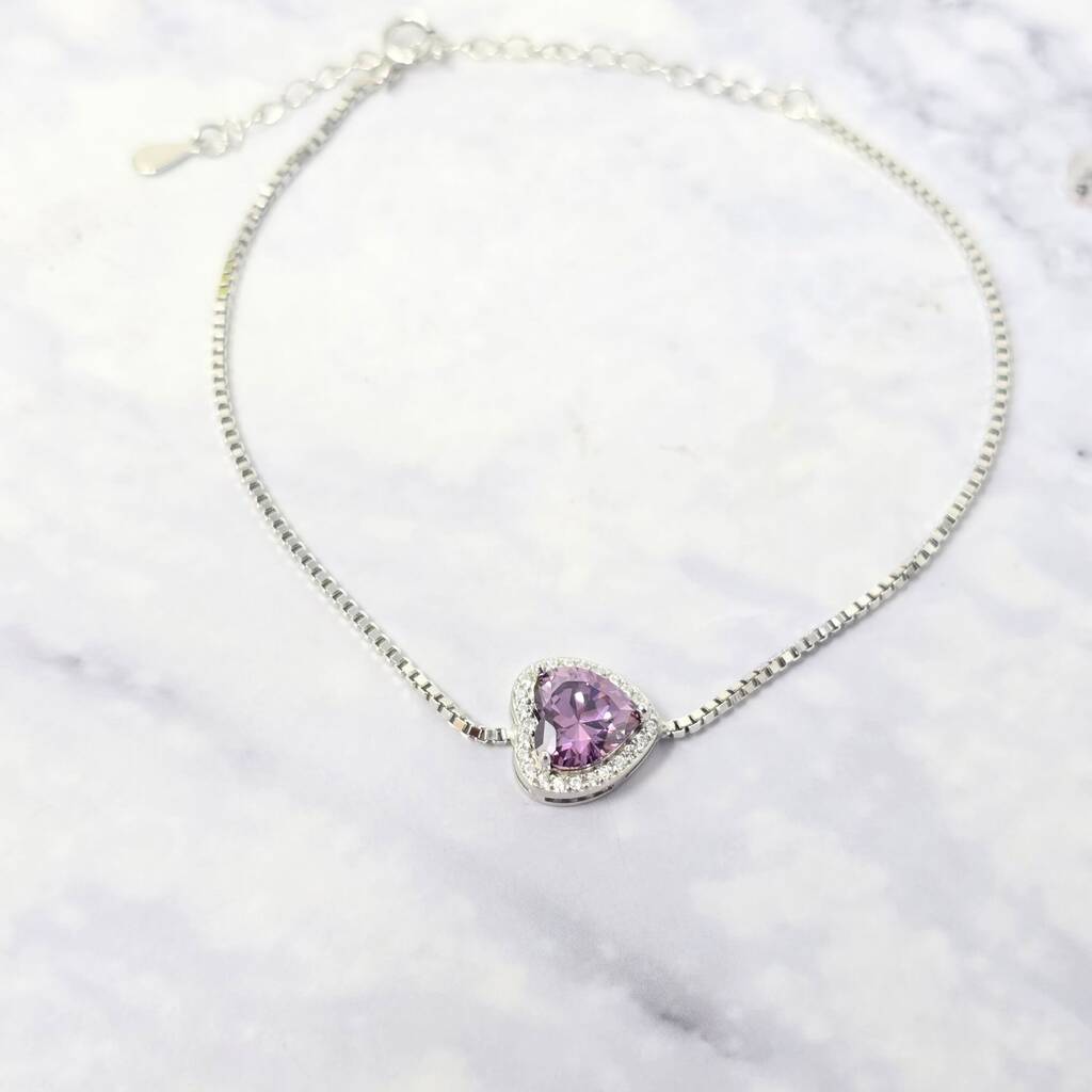 Amethyst Peridot Emerald Gemstone Love Heart Silver Bracelet
