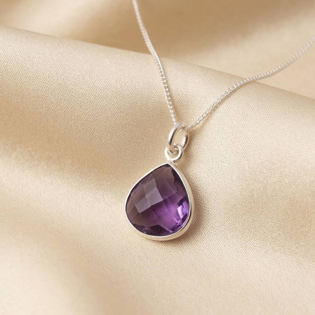 Amethyst February Birthstone Silver Pendant Necklace