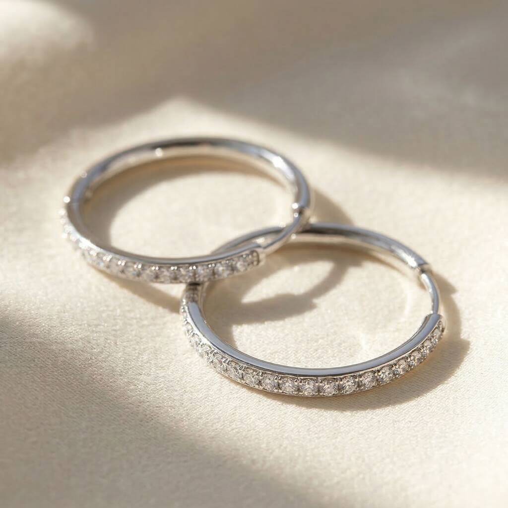 Big Round 40mm Hoop Silver Earrings With Crystals