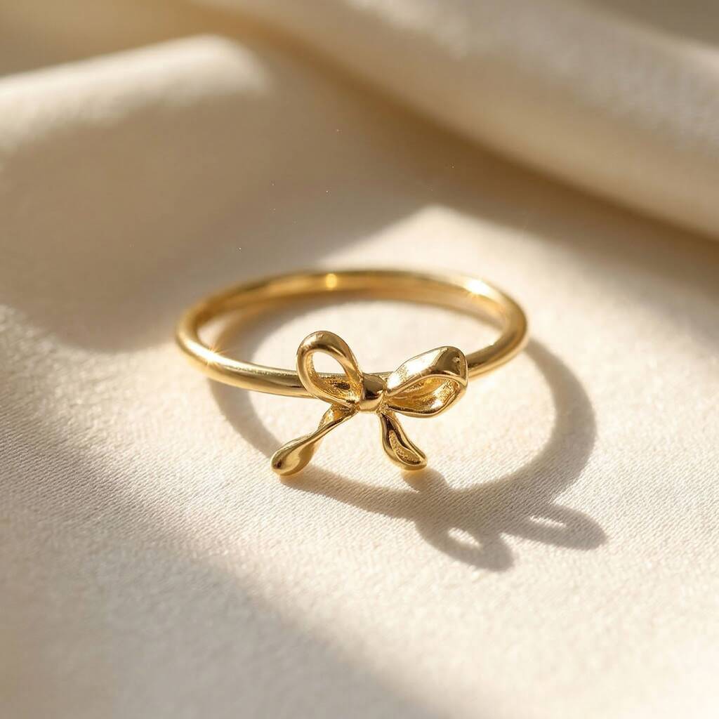 Bow Tie Bowknot Thin Gold Plated Stacking Ring