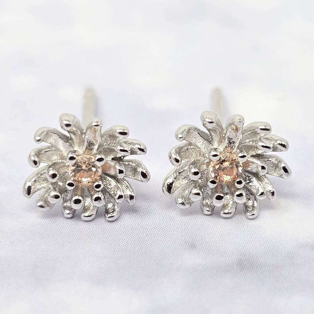 Sterling silver chrysanthemum stud earrings with November’s citrine, perfect for birthdays, meaningful gifting, or adding warm, radiant elegance and charm to outfits.Chrysanthemums symbolise joy and positivity, making these birthstone studs a meaningful gift. The citrine adds radiant colour and sophistication. Arrives in luxury gift packaging, ready for gifting.
