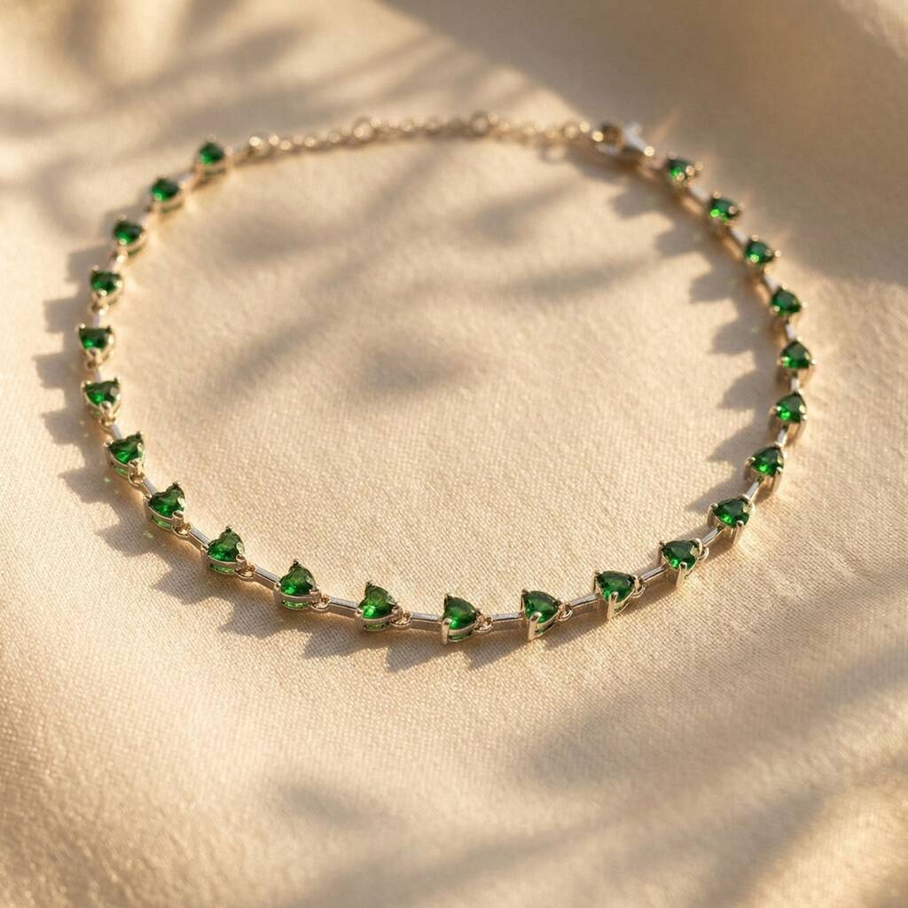 Emerald May Birthstone Heart Tennis Silver Bracelet