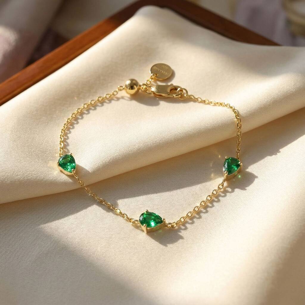 Emerald May Birthstone Minimalist Gold Vermeil Bracelet