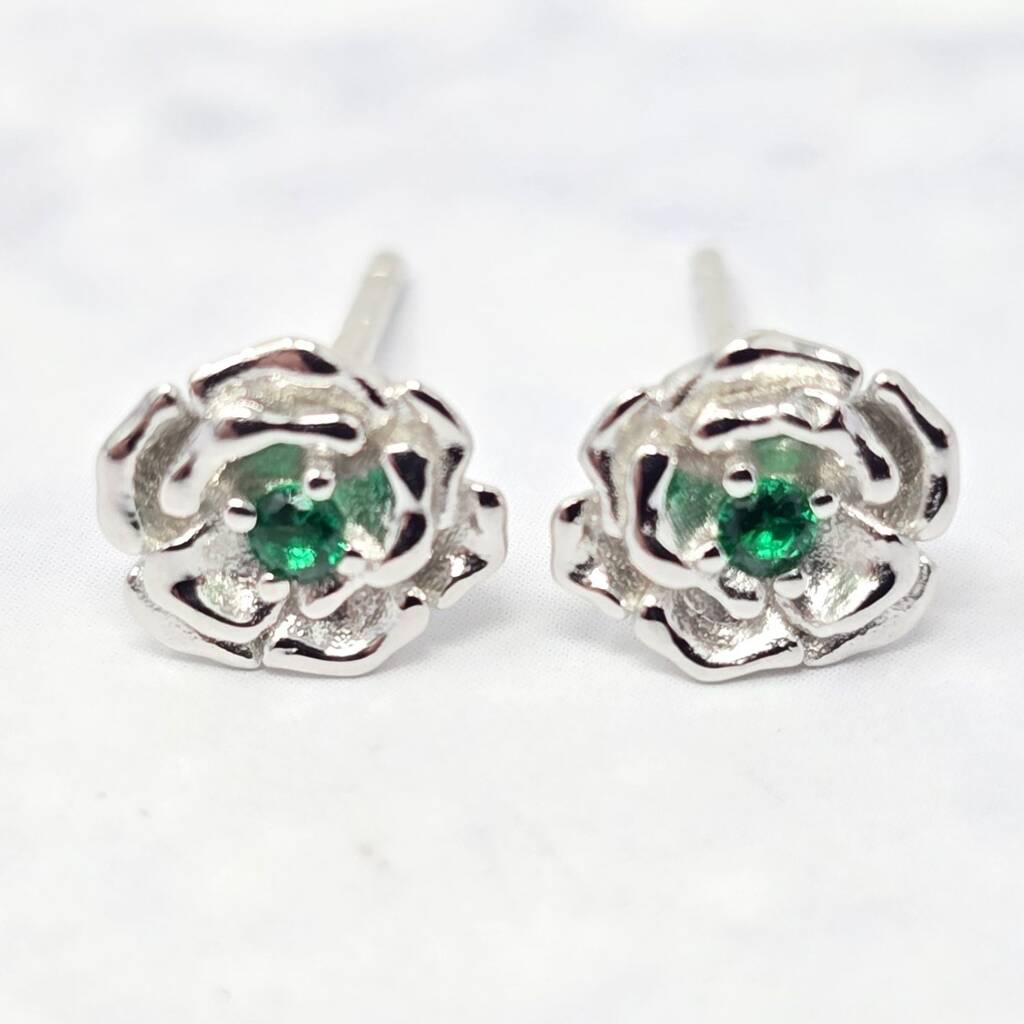 Sterling silver hawthorn stud earrings featuring May’s emerald birthstone, perfect for birthdays, elegant gifting, or adding subtle colour and style to everyday wear.Hawthorn flowers symbolise hope and protection, making these studs a meaningful and stylish accessory. The emerald adds a refined touch of colour. Delivered in luxury gift packaging, ready for gifting.